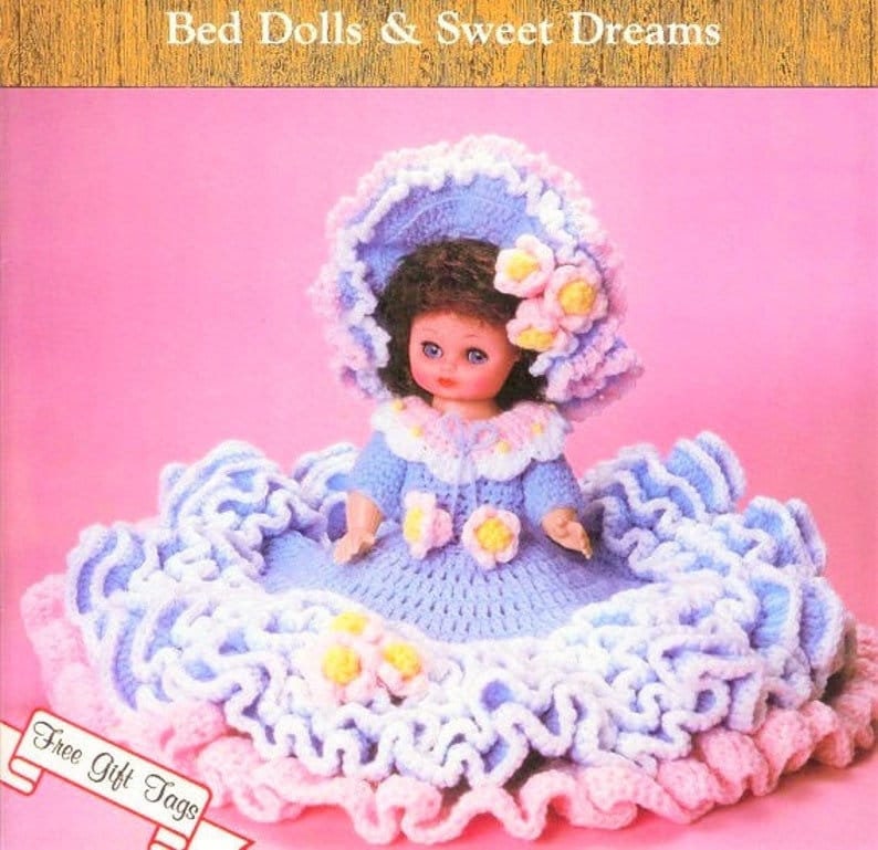 Vintage Crochet Pattern 13 Sarah Bed Doll Frilly Dress Etsy Uk